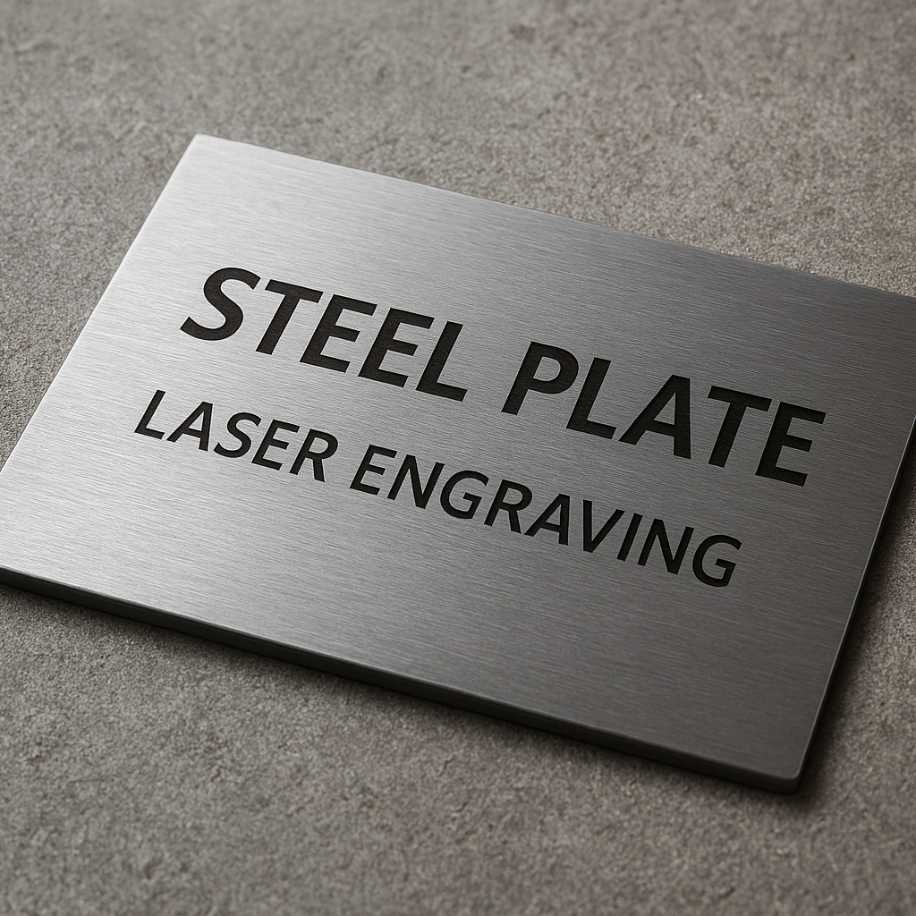 Graveren gebeurt met markeerspray; gravure verschijnt in zwart op het metaal.